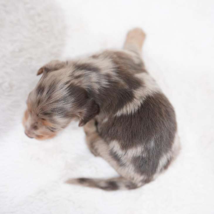 | 毛色 | ブラウンダップル&タン(チョコレートダップル&タン) |